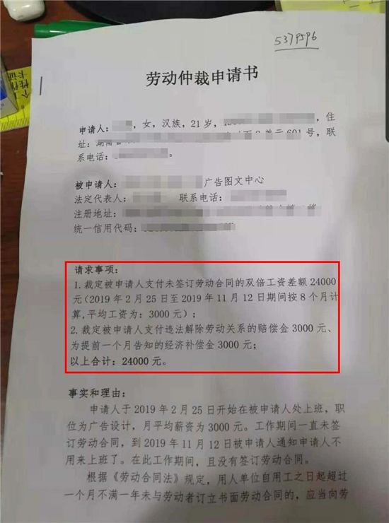 湖南邵阳一家广告图文公司的老板在微信群里的一段吐露,揭开了广告标识行业的“遮羞布”。2019年2月尾该公司招聘了设计师小花(假名),设计水平一样平常,于是想将她替换个岗位,起源讨论后小花差别意,于是老板想辞退她,效果却收到了一份《劳动仲裁申请书》。小花以“未签署劳动条约”为由到劳动局把广告公司老板告了。《劳动仲裁申请书》上明确指出需赔偿小花在职时代8个月的双倍赔偿人为,共24000元。老板万万没想到,员工事情不起劲、频仍蜕化,已经给公司造成损失,自己没索赔已经仁至义尽。没收到一丝谢意,反而被告上法院。太冤了!