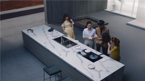 这一次在方太的广告里,厨房不但泛起在家里,还泛起在了一些办公场合、社交场合、公共运动空间。