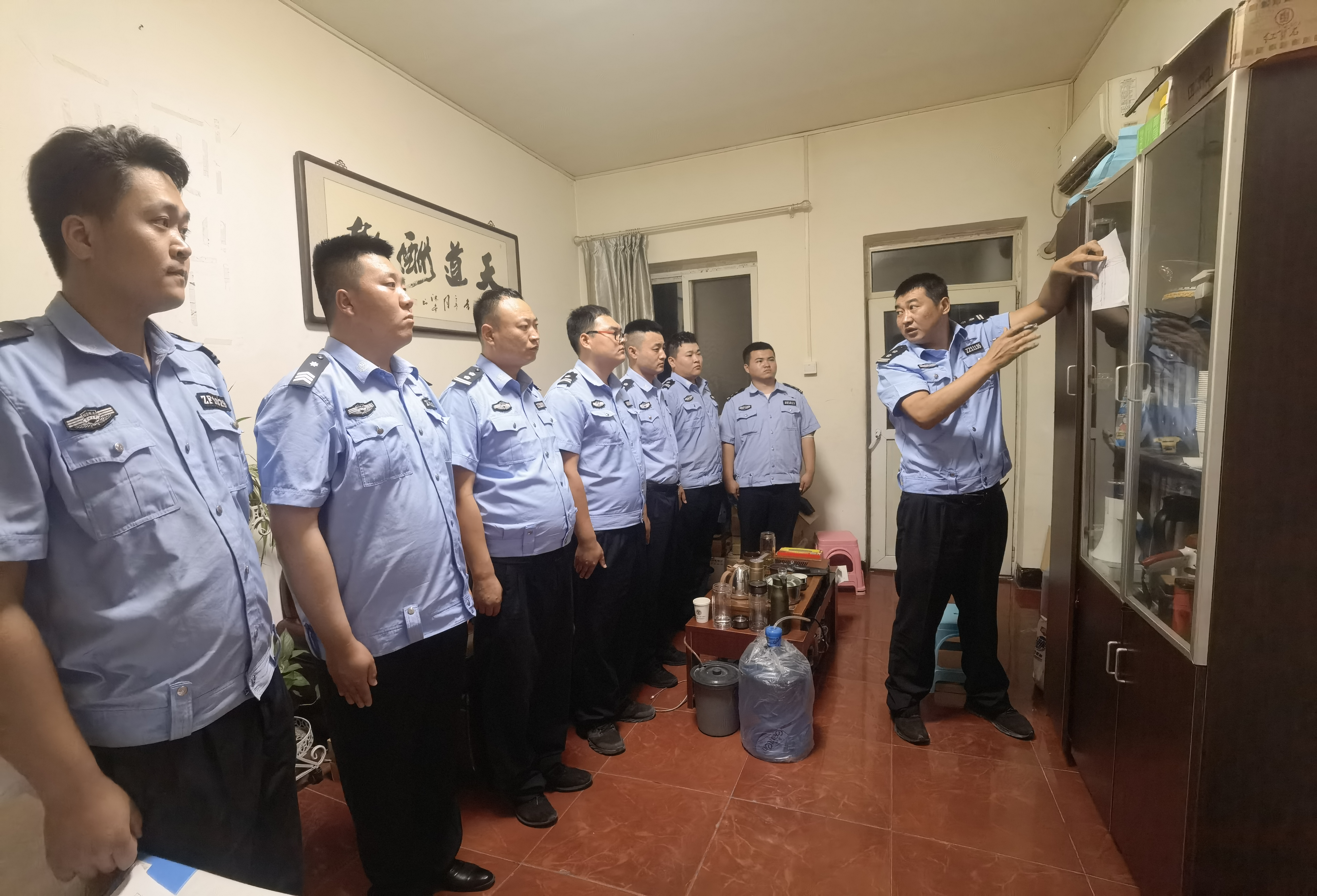 为切实做好防火事情,提升安保职员消防清静意识,增强消防清静治理,戎辉安保天宫院项目通过此次金科火灾使命现场管控袒露出来的一些薄弱环节,荟萃队长主干举行汇总讲评。对管控缺乏之处举行总结,重点培训进入火灾管控现场后的清静注重事项,及管控重点。
